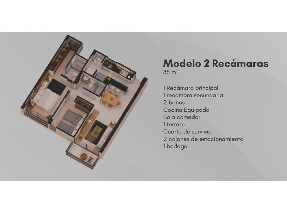Modelo de 2 Recámaras 88 m2: