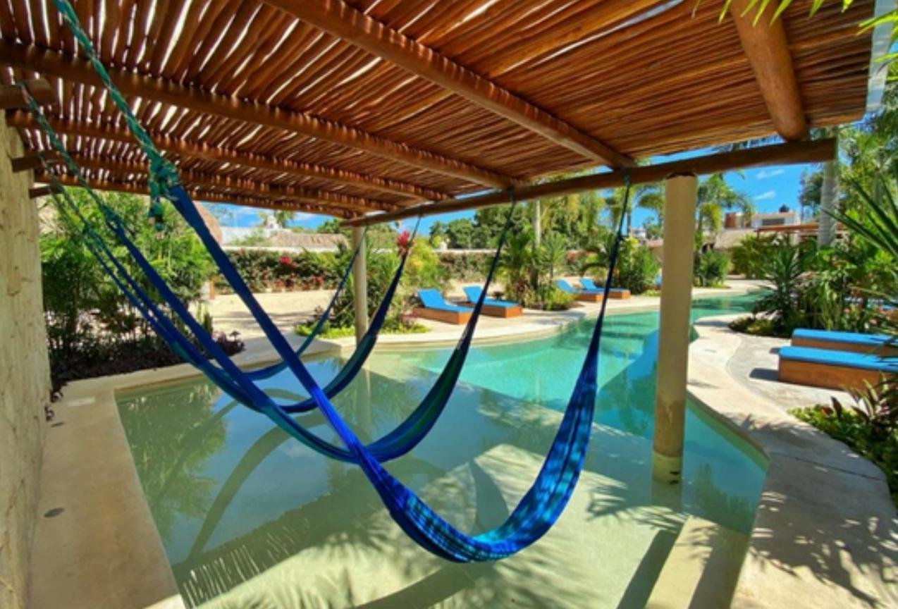Entre sus instalaciones se destaca una impresionante piscina de 25 metros con acabado de chukum, un oasis de frescura para los huéspedes. La propiedad también cuenta con una recepción completamente equipada, una lavandería industrial, un área de masajes, y un estacionamiento con capacidad para hasta 12 vehículos.